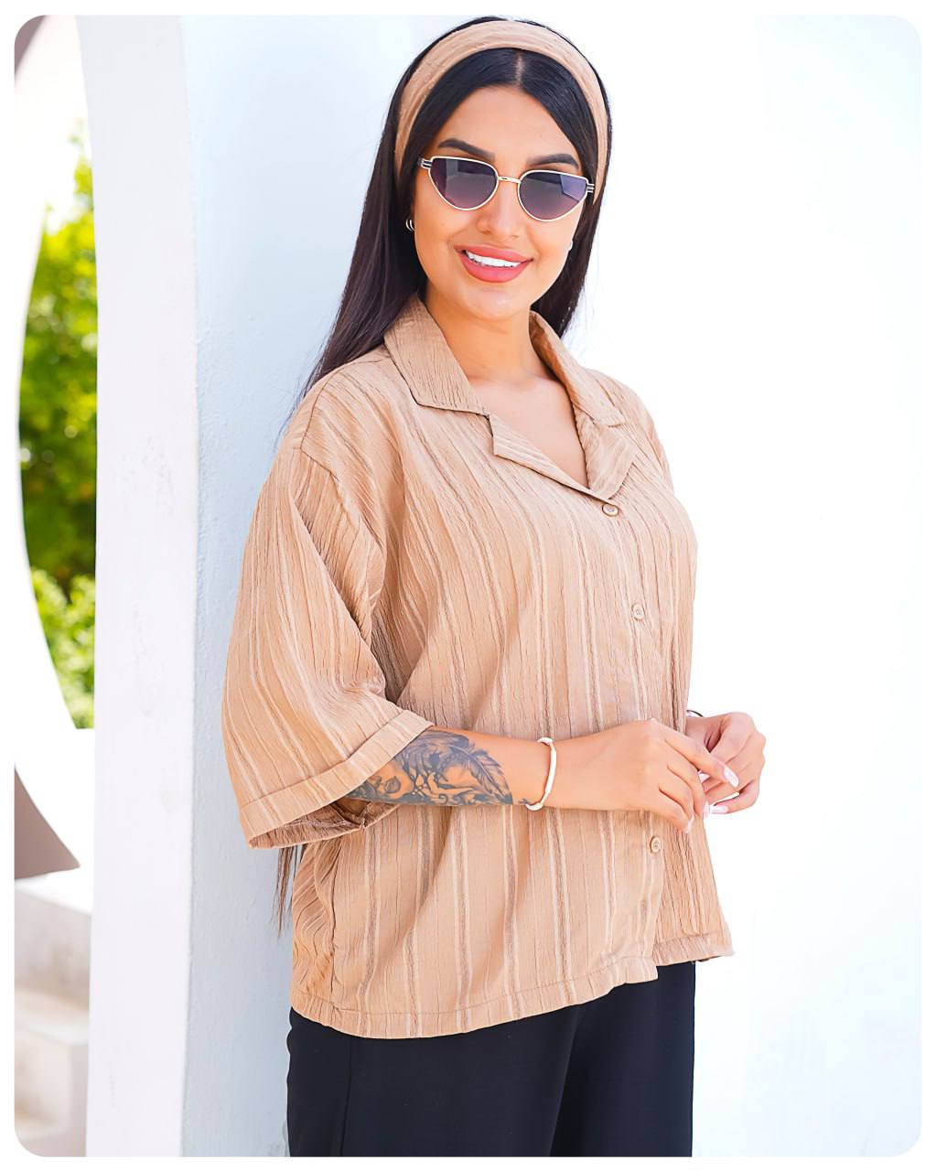 شومیز زنانه باکسی یقه انگلیسی بنلی طرحدار